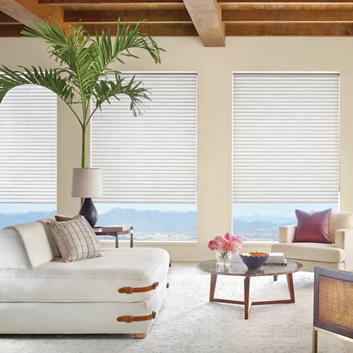 Energy‑saving comfort with a refined look. Options include Duette Cellular Shades, Sonnette Roller Shades, and Applause Cellular Shades.
